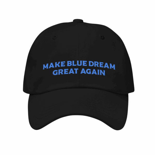 Premium Blue Dream strain hat with embroidered cannabis stamp design