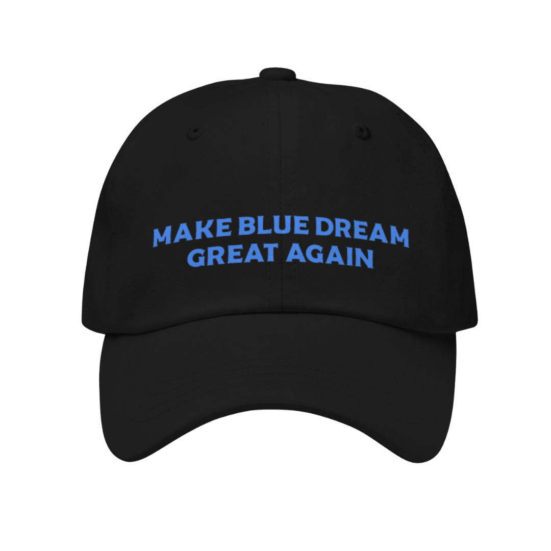 Premium Blue Dream strain hat with embroidered cannabis stamp design