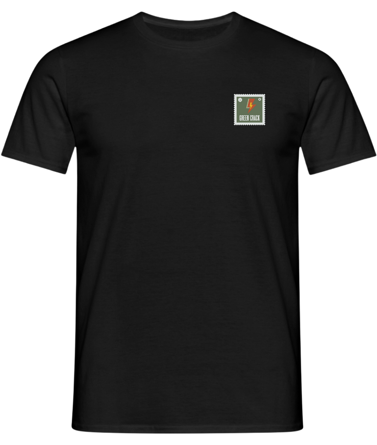 Official Green Crack strain t-shirt featuring our exclusive cannabis stamp design